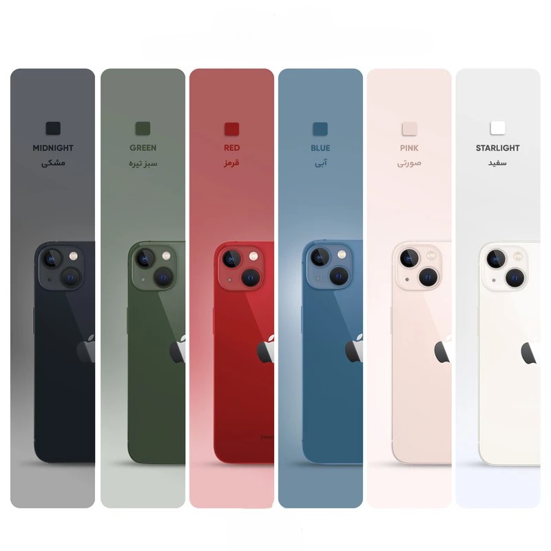 گوشی موبایل iPhone 13 CH پرچمدار جدید شرکت اپل است که با چند ویژگی جدید و دوربین دوگانه روانه بازار شده است. نمایشگر آیفون 13 به پنل Super Retina مجهز شده است تا تصاویر بسیار مطلوبی را به کاربر عرضه کند. این نمایشگر رزولوشن بسیار بالایی دارد؛ بهطوریکه در اندازهی 6.1 اینچیاش، حدود 460 پیکسل را در هر اینچ جا داده است. امکان شارژ بیسیم باتری در این گوشی وجود دارد. تشخیص چهره با استفاده از دوربین جلو دیگر ویژگی است که در آیفون جدید اپل به کار گرفته شده است. از نظر سختافزاری این گوشی از تراشهی جدید A15 بهره میبرد که دارای 15 میلیارد ترانزیستور است که دارای کنترل گرمای مطلوبی بوده که تا بتواند علاوه بر کارهای معمول، از قابلیتهای جدید واقعیت مجازی که اپل این روزها روی آن تمرکز خاصی دارد، پشتیبانی کند. به گفته خود شرکت اپل این گوشی دارای سرعتی 50 برابر نسخه 12 خود است. پردازنده دارای ماژولار جدیدی است که مصرف باتری را بسیار پایینتر آورده است و شما دارای حفظ باتری بالاتری هستید. اپل در این سری از گوشیهای iPhone خود پردازنده گرافیکیای را قرار داده که از سری 12 گوشیهای خود 30 درصد سریعتر است و این نویدبخش آن است که شما میتوانید بازیهایی را با گرافیک و MAP سنگین تر و بزرگتر اجرا کنید. یکی از ویژگیهایی که در iPhone 13 شاهد هستیم سیستم فیلمبرداری ProRes سینمایی آن است که می تواند انقلابی در فیلمبرداری گوشیهای موبایل بهراه انداخته باشد. گوشیهای نات اکتیو با قرار گرفتن سیمکارتهای داخلی اکتیو میشوند و برخلاف مدل اکتیو پلمپ کالا باز نشده است. گوشیهای اکتیو برند اپل هم به این شکل هستند که به دلیل محدودیتهای برخی از محصولات اپل برای کشور ایران، در کشورهای همسایه بهصورت رسمی با یک بار قرار گرفتن سیمکارت، اکتیو شده و پلمپ میشوند و باید بدانید که این پروسه هیچ مشکلی در راستای گارانتی کالا بههمراه ندارد. پارتنامبرهای اروپا و ژاپن و امارات تک سیمکارت هستند و پارتنامبرهای مربوط به امارات هم از فیس تایم پشتیبانی نمیکنند. پارتنامبر JA (ژاپن) هم حتی در حالت سایلنت صدای شاتر عکس قطع نمیشود.